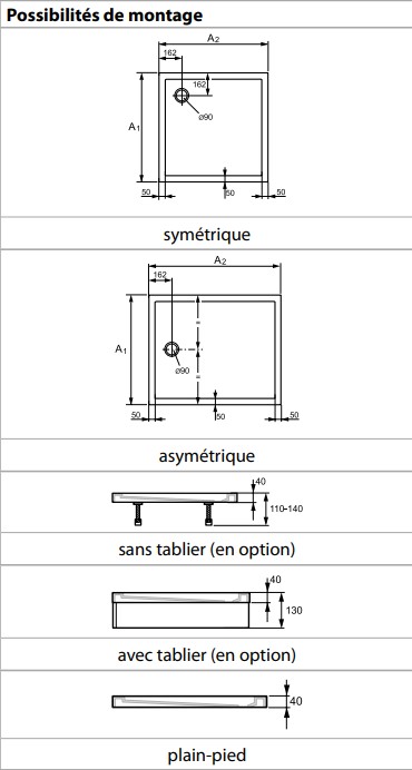 TUB DE DOUCHE HUPPE PURANO 100 X 80 BLANC
